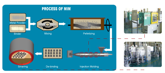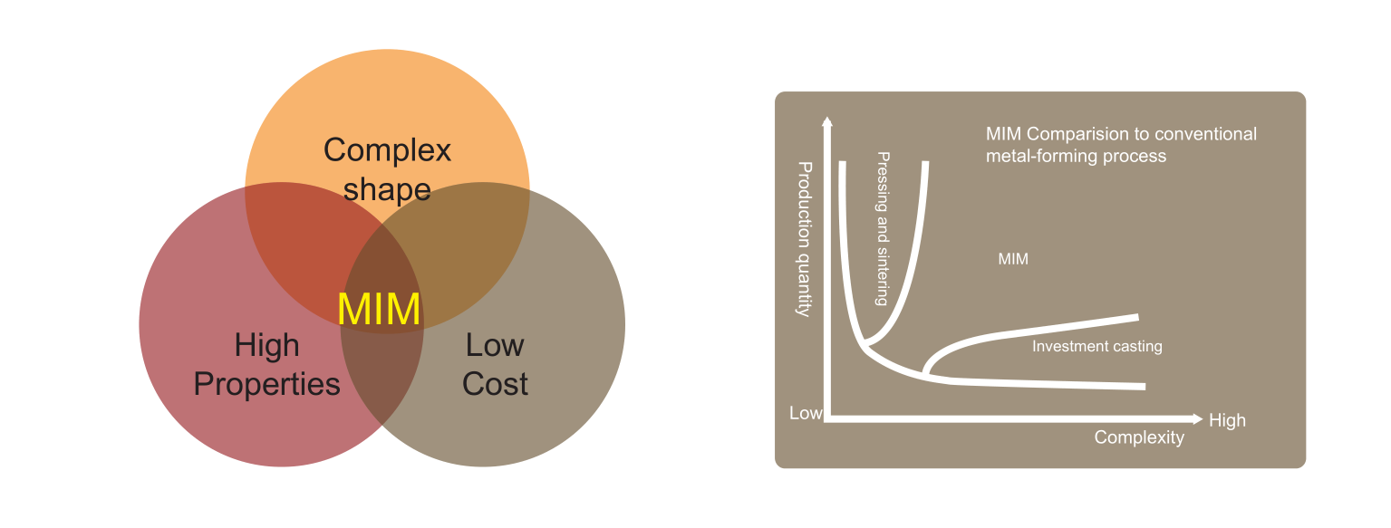 金属注射成形工艺(英文简称MIM)是一种适合大批量生产形状复杂高精度、高性能要求的小型金属零件的近终成形工艺,有着常规粉末冶金、机加工和精密铸造工艺无法比拟的优势。